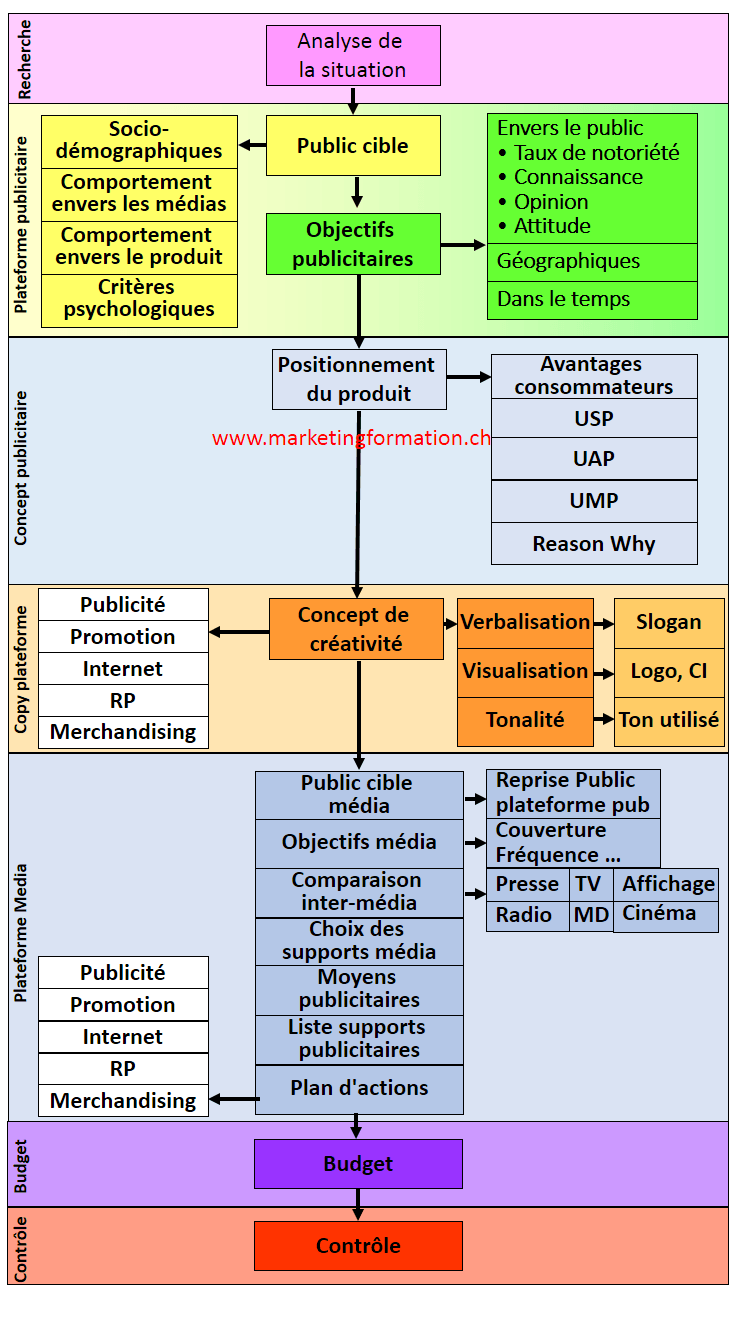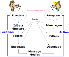 Il y a l'émetteur, l'entreprise, qui désire envoyer un message. Ce message va être "encodé" et ensuite diffusé par le biais de différents médias.