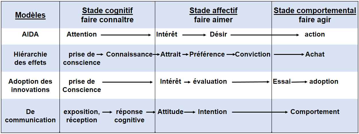 ci-dessous quelques modèles utilisés pour décrire les réponses des personnes à une action publicitaire.